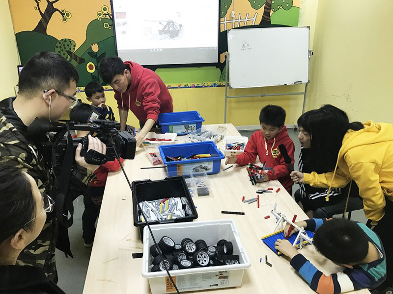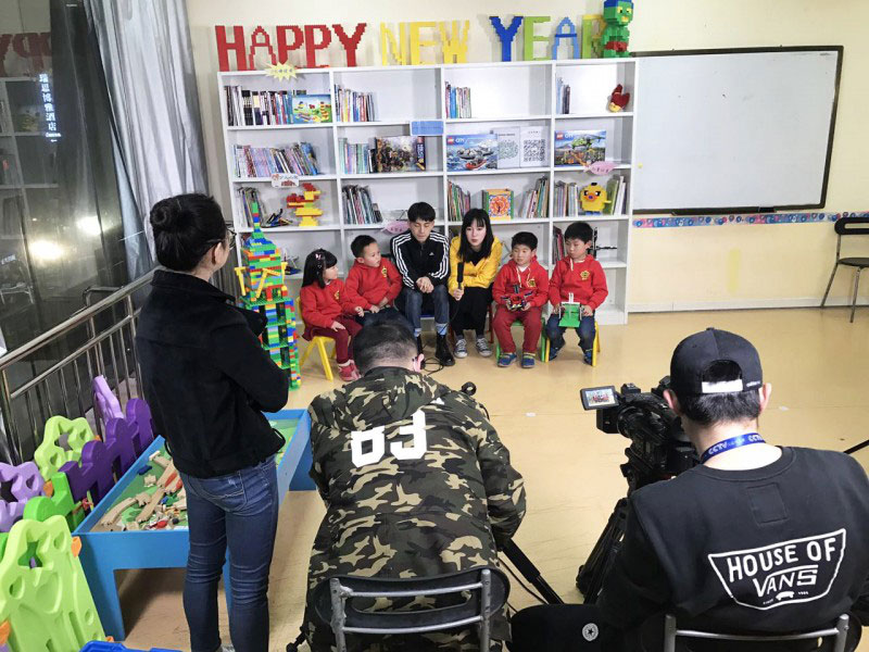 昨天,CCTV-少儿星工坊栏目组来访,主持人和摄影师架起摄像机,拍摄了学龄主题课程投石车和学前主题课程英国大本钟两个代表课程,全程记录了少帅、丹丹、洁洁三位老师和小朋友们带来的精彩课堂。